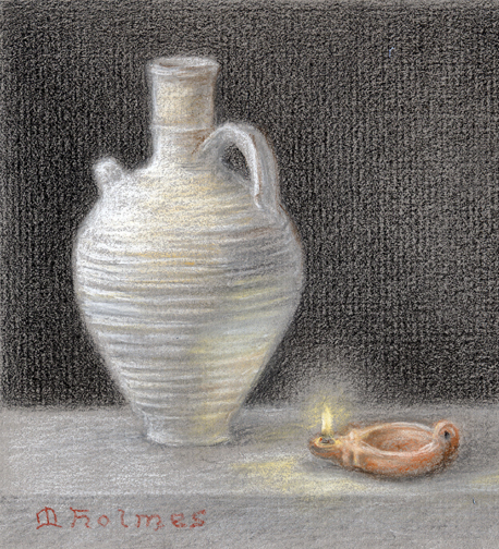 Drawings and Watercolors View of Callian (1987) Table of Wisdom (2000) Study for Three Holy Women at the Empty Tomb (n.d.) A Plumbline in the Hand of Zerubbabel (1988) The Green Velvet Chair (1988) Study of Davenport Hotel Lobby Spiral Lamp (2009) Caryatid from Davenport Hotel Lobby Fireplace (n.d.) Study for Pastoral Landscape (1991) Study of McLean Foyer of Meditation, Armstrong Browning Library, Baylor University (2010) Still Life Studies and Watercolors Hubbard Squash (1990) Study for Vanitas (2000) Ginger Jar with Oranges and Almonds (1991) Pomegranates with Parsley (1991) Vessels Terra Cotta Vessels #3 A Fanny Nampeyo Bowl (1999) Glass Vessel (2002) Study of Green Vase (1997) Study of an Amphora (1997) Terra Cotta Vessels #1 A Greek Vase (1996) Study of Blue Vase (1997) Flowers & Plants Study of a Quince (1992) Camelia (1990) Tree Peony (1991) Roses with Daisies (1991) Study of a Fuschia (1996) Lilacs with Tulips (1991) Roses in a Flask (1987) Study of Hawthorn Berries (1987) Persimmon (1991) Musical Instruments Violin and French Horn (1996) French Horn (1997) Share this: Click to share on Pinterest (Opens in new window) Pinterest More Click to share on Facebook (Opens in new window) Facebook Click to share on LinkedIn (Opens in new window) LinkedIn Click to share on Tumblr (Opens in new window) Tumblr Click to share on Reddit (Opens in new window) Reddit Click to email a link to a friend (Opens in new window) Email Click to print (Opens in new window) Print Like Loading...