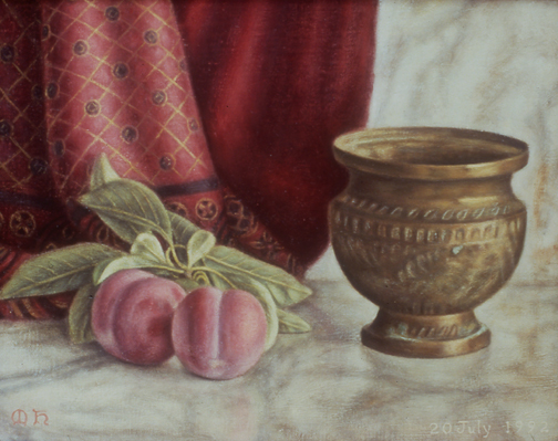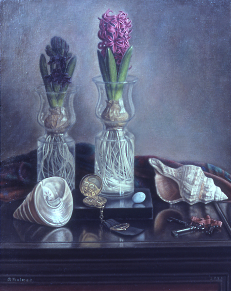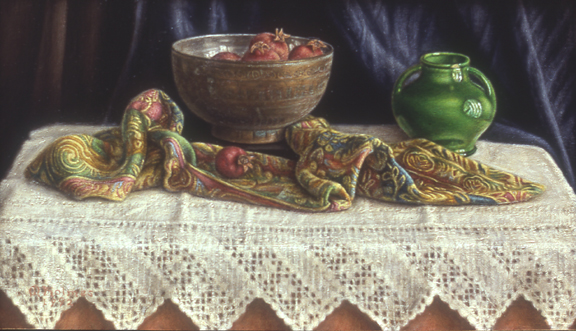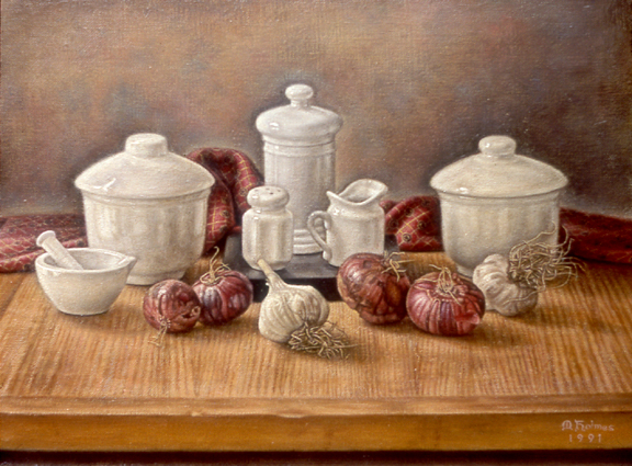 Calendulas in a Jar (1978)A Winter Still Life (1984)Still Life with Pineapple (1989)A Setting for Tea (1989)Elements of Varnish Making (1990); Photo: Susan Dirk/Under the LightArabesque (1991)Porcelain Vessels with Onions and Garlic (1991)Provence: Morning (1992)Plums with Brass Vessel (1992)Preparations for Coffee (1992)Still Life with Radicchio (1993)Still Life for a Wedding Anniversary (1993)Salt and Vinegar (1994)Still Life with Lady Apples (1995)Cup, Shell, and Glass Muller (1996)Old and New Vessels (1996)The Blue Ginger Jar (1999)Three Exotic Vessels (1999)Sea Forms (2005)