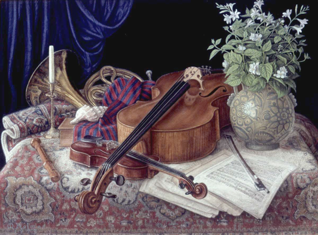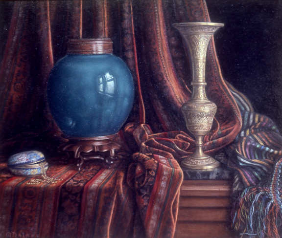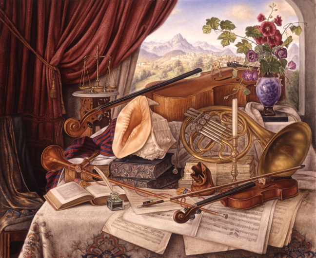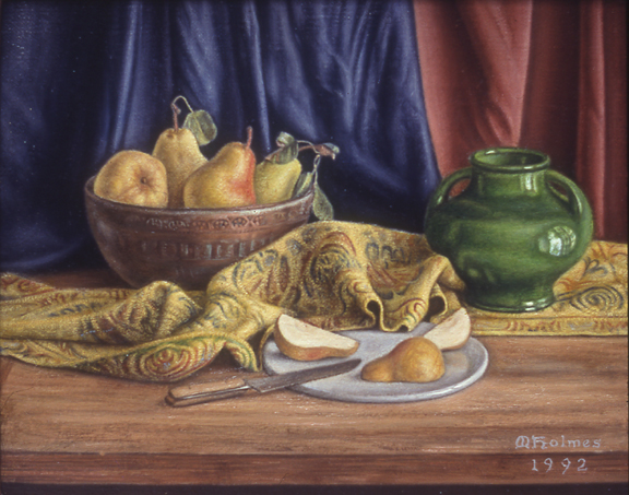 Still Life with Bread, Wine, and Fruit (1985)Still Life for a TeacherHyacinth Glasses (1991)Turban Squash (1991)Eastern Trade (1992)Still Life with Pears and Green Jar (1992)Still Life with Helmet Shell (1992)Provence: Midday (1992)Provence: Evening (1992)Cello and Blue Silk (1993)The Art of Composition (1993)Still Life with Frankincense (1995)Olive Jar with Lace (1997)Ginger Jar with Plums (1997)An Object of Contemplation (1997)Still Life with Cheese and Pears (1988)Betty’s Memories (1999)Common Vessels (1999)Vanitas (2002) See artist’s commentary on Vanitas.Still Life with Wooden Toys, Marbles, and School Slate (2011)
